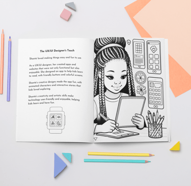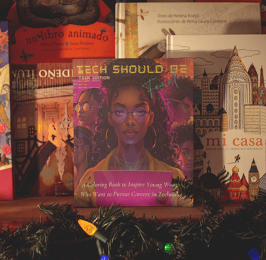 Our Tech Should Be Female STEAM-focused coloring books introduce our girls to STEAM careers through fun, culturally relevant illustrations, making these roles feel both exciting and attainable. By showcasing highly relatable role models in tech, these books provide essential representation and inspiration, helping girls envision themselves as part of a diverse tech future.